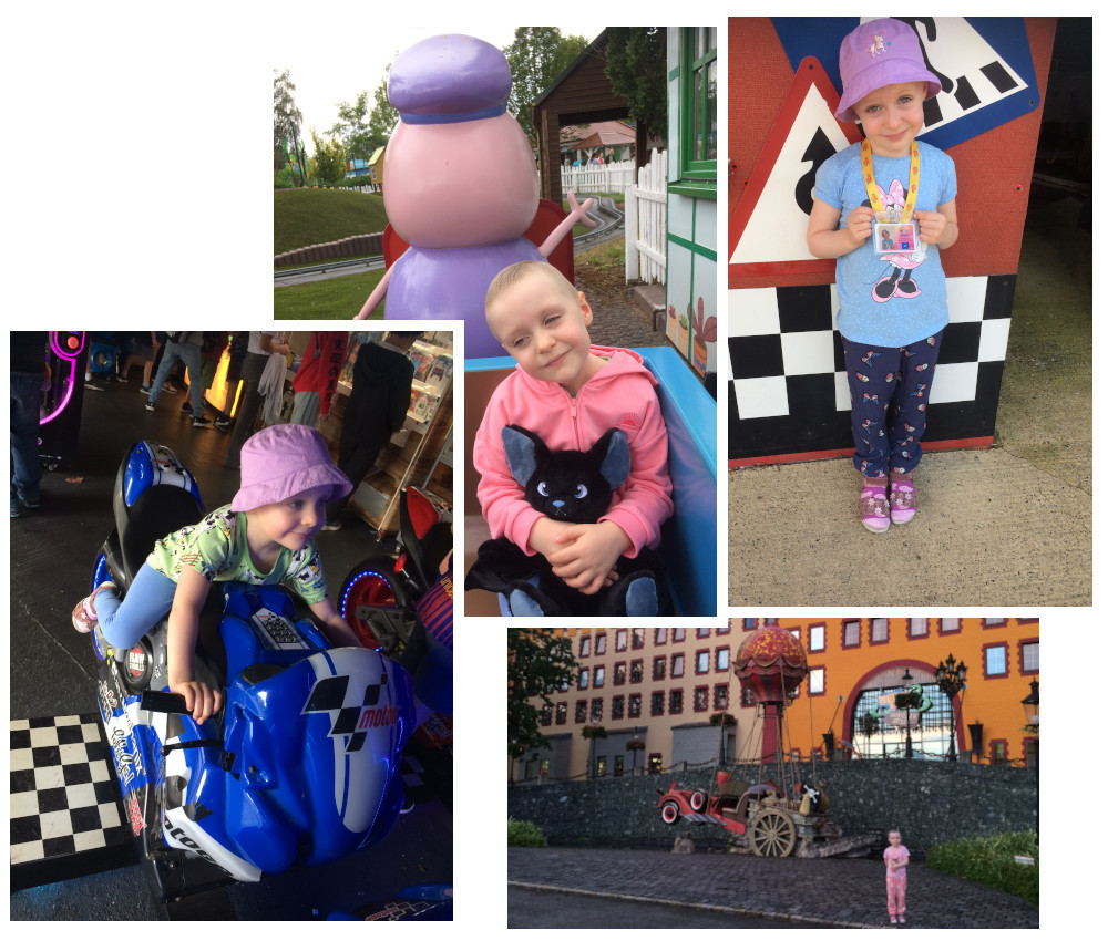 Louisa liebt die Serien und Geschichten von Peppa Pig und der ganze „Familie Wutz“ sehr. Daher war es ihr großer Traum, einmal Peppa zu treffen und in einem Peppa Pig Zimmer zu übernachten. Das kann man im Heidepark Soltau und schon die Anreise mit dem Zug dahin war ein großes Abenteuer für Louisa…lief doch leider nicht alles reibungslos. Dafür gab es dann vor Ort im Peppa Pig Land ein Highlight nach dem anderen: - Louisa konnte mit dem Heißluftballon fahren (was sie auch mindestens 3 mal gemacht hat), - sie machte eine richtige Floßfahrt, - die entspannte Fahrt mit dem „Wutz-Zug“, - das Plantschen im Schwimmbad war toll, - das persönliche Treffen mit Peppa ist unvergesslich, … und bei allem war ihre kleine „Fidi Fledermaus“, neben unserem Kinderträume-Maskottchen, ihr ständiger Begleiter!! Ganz besonders stolz ist sie auch darauf, dass sie mit den „Wüstenflitzern“ einen echten Führerschein machen konnte. Dazu musste sie die Verkehrsschilder kennen, den richtigen Umgang mit der Gangschaltung beherrschen und – ganz wichtig! – an jedem Zebrastreifen anhalten! Das hat sie alles mit Bravour gemeistert und hat jetzt ihren Führerschein, der bis 2027 gültig ist, dann muss sie ihn vielleicht noch einmal im Heidepark erneuern. Am Abend ist sie immer müde und sehr glücklich in ihr Peppa Pig Bettchen gefallen (natürlich im Peppa Schlafanzug)