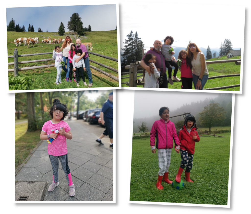 Tala ist ein ganz besonderes Mädchen: sie hat noch zwei Schwestern, die am selben Tag Geburtstag haben wie sie- ja, sie sind tatsächlich Drillinge! Da ist immer etwas los! Leider war Tala, die das Down Syndrom hat, auch an Krebs erkrankt. Tala liebt die Geschichten und Filme von „Heidi aus den Bergen“, aber leider wohnt sie sehr weit von richtig hohen Bergen entfernt. Daher wünschte sie sich einen Aufenthalt auf einer Alm mit vielen Tieren. Vor Kurzem durfte sie mit ihrer Familie auf den schönen „Aschenauer Hof“ nach Ruhpolding fahren, wo sie „auf dem Heuboden“ (so heißt die Ferienwohnung) übernachtet haben. Neben vielen Tieren (Pferde, Kühe, Schafe, Ziegen, Hühner, Kaninchen, …) gehört auch eine wunderschöne Almhütte zum Hof, die Tala besuchen konnte. Was für ein Ausblick!! Talas strahlendes Gesicht sagt alles. Neben den Tieren war auch das Seilbahnfahren und ein tolles Schwimmbad in der Nähe ein ganz besonderes Highlight, an das sich Tala und ihre Schwestern auch nach der Rückkehr ins „Flachland“ gerne erinnern.