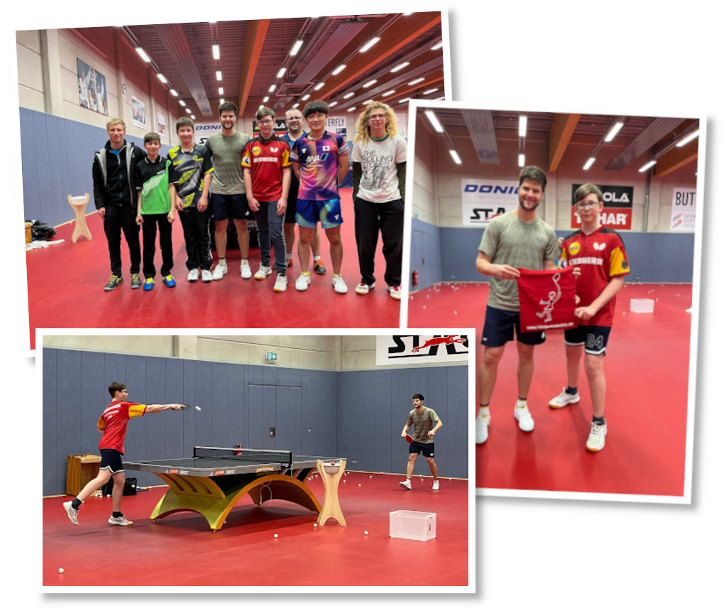 Timon wollte zusammen mit seinen Tischtennisfreunden aus seinem Verein eine Trainerstunde bei Dimitrij Ovtcharov haben. Welchen besseren Ort gibt es dafür als das Deutsche Tischtenniszentrum in Düsseldorf?! Der Tag begann mit einer Führung durch das Zentrum und in einer Sporthalle trainierten dann viele National- und Bundesligaspieler. Timon, seine Freunde und seine beiden Trainer durften hautnah dabei sein und alles beobachten. Die Bälle zischten nur so hin und her und es war sehr aufregend, den Spielern zuzusehen. Danach ging es dann richtig los, das Training begann. Timon bekam eine Extrastunde mit seinem Idol Dimitrij und alle anderen bekamen weitere hochkarätige Trainingspartner. Timon konnte es gar nicht fassen und kam aus dem Strahlen gar nicht mehr heraus.
