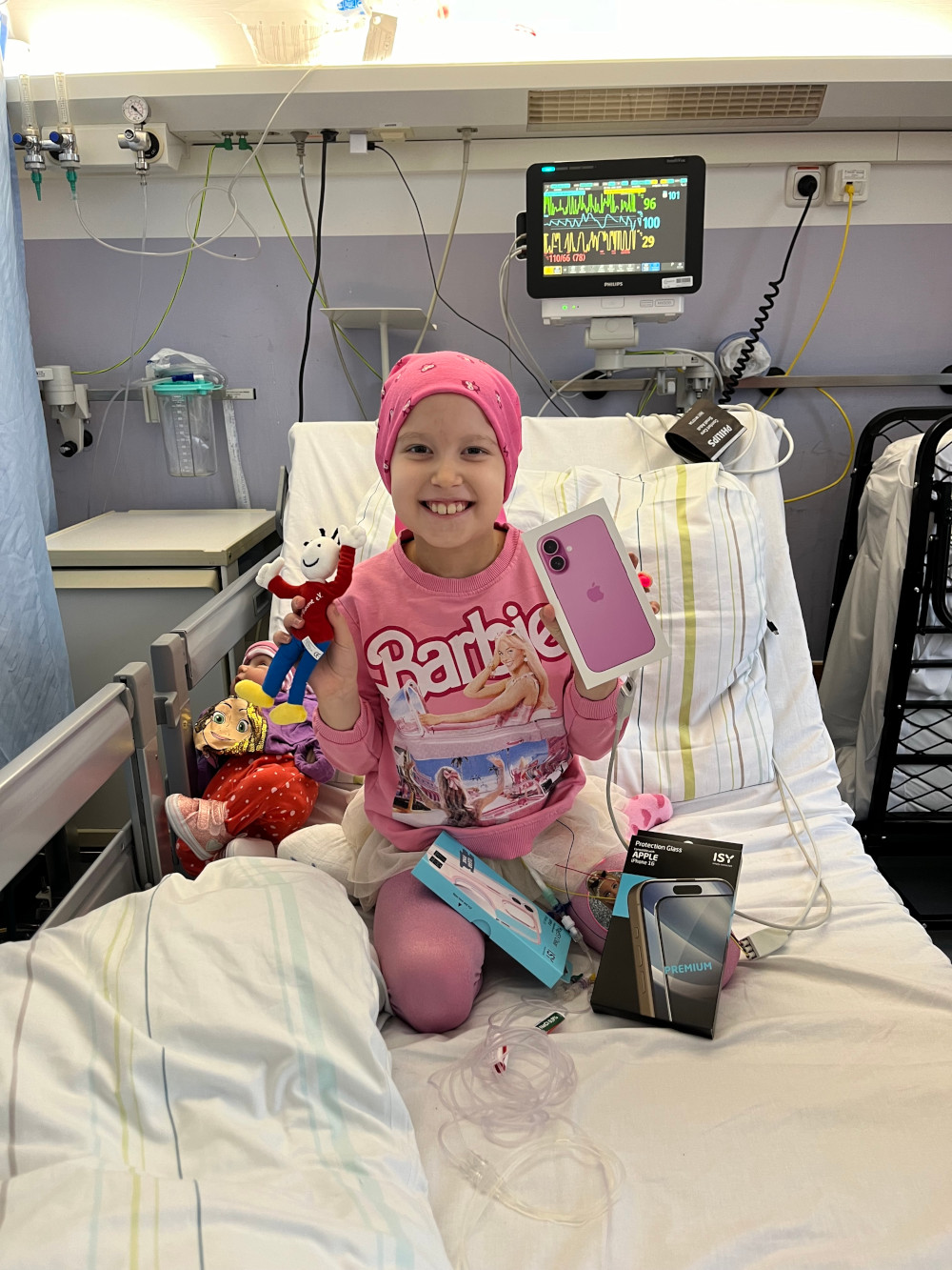 Anesa ist im Sommer an Krebs erkrankt. Momentan wird sie in der Klinik behandelt und muss bald für ein paar Wochen zur Bestrahlung in eine andere Stadt fahren. Wie so viele Kinder, langweilt sie sich zum Teil fürchterlich in der Klinik. Sie hat ein sehr altes Handy, was auch noch zu ihrem Unglück vor ein paar Tagen runtergefallen und kaputt gegangen ist. Um mit ihrer Familie und ihren Freunden in Kontakt bleiben zu können, war es ihr großer Herzenswunsch ein neues Handy zu haben. Sie ist „Mädchen“ durch und durch und daher sollte das neue Handy auch unbedingt die Farbe Rosa haben. Als wir ihr in der Klinik ihr tolles, nagelneues Handy überreichten, war sie überglücklich… die Fotos sprechen für sich. Sie hatte sich für die Wunscherfüllung extra rosa-schick gemacht und ihren tollen Wunschbrief, den sie an uns geschrieben hatte, wollen wir Ihnen auch nicht vorenthalten.