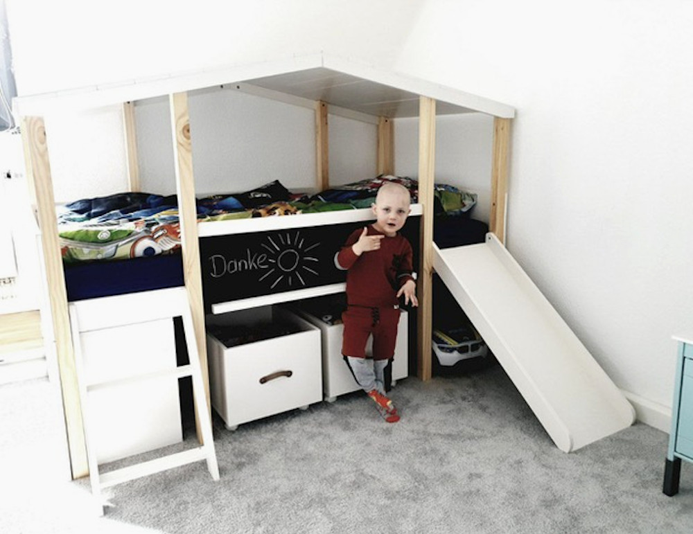 Ezra ist ein kleiner tapferer 4-jähriger Held und Kämpfer, der immer fröhlich und geduldig die lange Zeit seiner Therapien ertrug und mit seiner Lebensfreude die Herzen aller verzaubert. Statt auf dem Spielplatz zu spielen, Laufrad zu fahren und einfach eine sorgenfreie Kindheit erleben zu dürfen, hat er schon unzählige Chemotherapien, hunderte Medikamente, viele, viele Untersuchungen und unzählige Eingriffe hinter sich bringen müssen. Nach der Intensivtherapie war es zuhause Zeit für ein größeres Bett im eigenen Zimmer und so wünschte sich Ezra ein schönes „Hausbett“ zum Träumen, Wohlfühlen, aber auch zum Spielen und Spaß haben. Wir finden Ezra hat sich ein ganz tolles Traumbett ausgesucht und wünschen ihm ganz viel Freude und vor allem schöne Träume in seinem neuen Bett.
